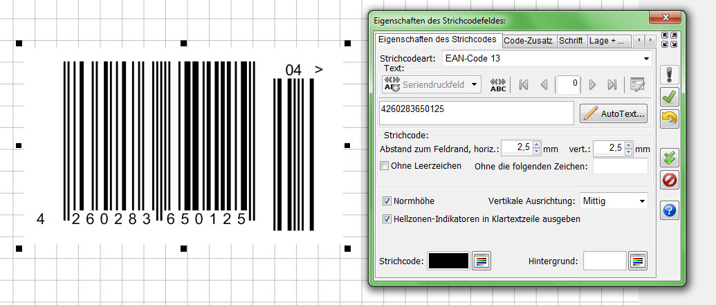 Heyer's Etiketten-Studio Pro - Strichcodefeld